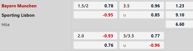 Thông tin tỷ lệ kèo bóng đá Bayern vs Sporting Lisbon: