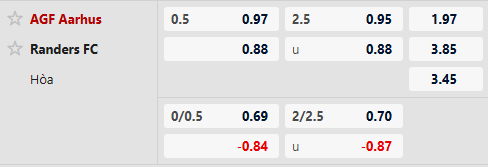Thông tin tỷ lệ bóng đá Aarhus AGF vs Randers:
