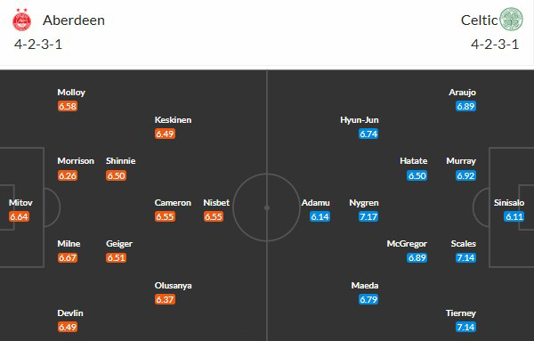 Đội hình dự kiến Aberdeen vs Celtic: