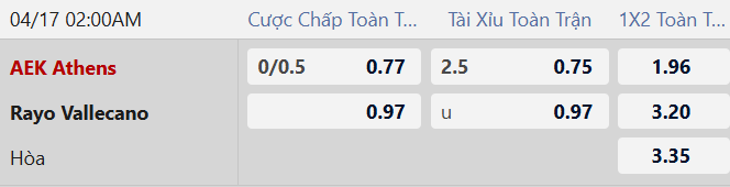 Soi kèo châu Á AEK Athens vs Vallecano: