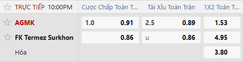 Thông tin tỷ lệ AGMK vs Surkhon Termez: