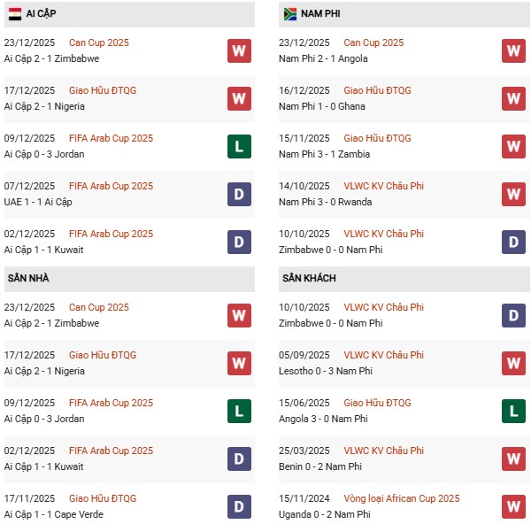 Thống kê phong độ Ai Cập vs Nam Phi: