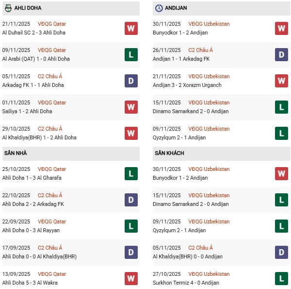 Thống kê phong độ Al Ahli Doha vs Andijon: