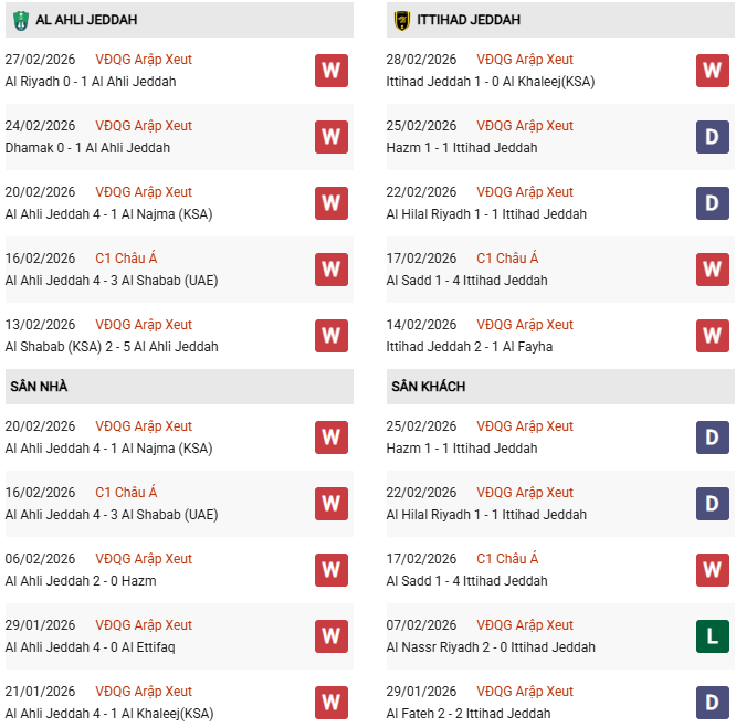 - Trên sân nhà, Al Ahli thắng 4, thua 1 trước Al Ittihad.
