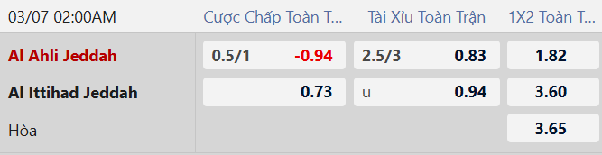 Thông tin tỷ lệ bóng đá Al Ahli vs Al Ittihad: