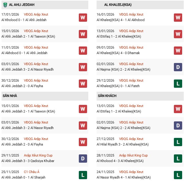 Thống kê phong độ Al Ahli vs Al Khaleej: