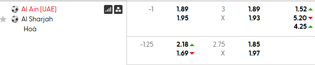 Thông tin tỷ lệ bóng đá Al Ain vs Al Sharjah: