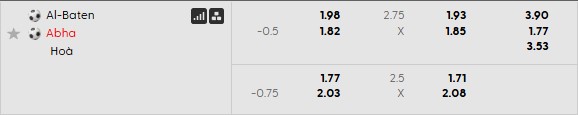 Thông tin tỷ lệ cược Al-Baten vs Abha: