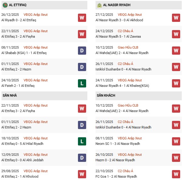 Thành tích đối đầu Al Ettifaq vs Al Nassr: