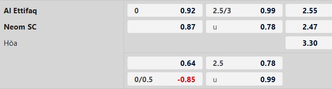 Thông tin tỷ lệ cược Al Ettifaq vs Neom: