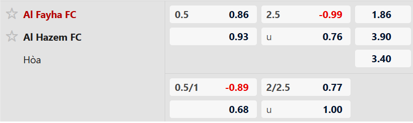 Thông tin tỷ lệ kèo Al Fayha vs Al Hazem: