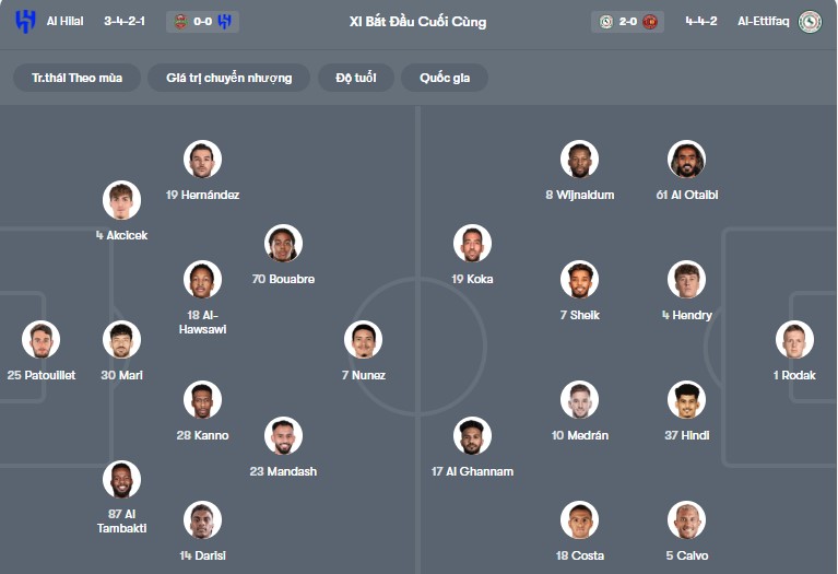 Thông tin lực lượng Al Hilal vs Al Ettifaq: