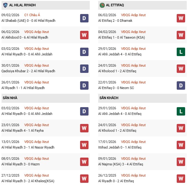 Thành tích đối đầu Al Hilal vs Al Ettifaq: