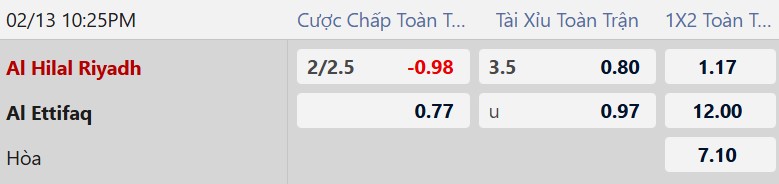 Soi kèo châu Á Al Hilal vs Al Ettifaq: