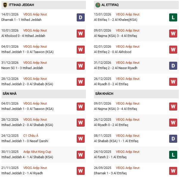 Thành tích đối đầu Al Ittihad vs Al Ettifaq: