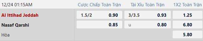 Al Ittihad được xếp ở cửa trên với mức chấp 1 3/4 bàn, phản ánh rõ sự chênh lệch về đẳng cấp và động lực thi đấu. Al Ittihad có lực lượng vượt trội và lợi thế sân nhà, nhưng việc phải chấp sâu cũng tiềm ẩn rủi ro nếu họ không sớm tạo được cách biệt. Nasaf Qarshi dù yếu hơn nhưng thường chơi khá kiên cường khi làm khách. Do đó, Al Ittihad vẫn là lựa chọn sáng giá, song khả năng thắng đúng cách biệt 2 bàn trở lên cần được cân nhắc kỹ.