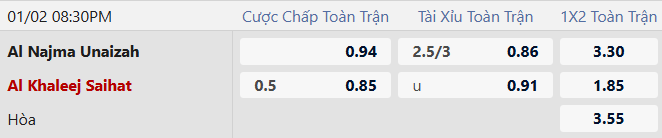 Thông tin tỷ lệ kèo Al Najma vs Al Khaleej: