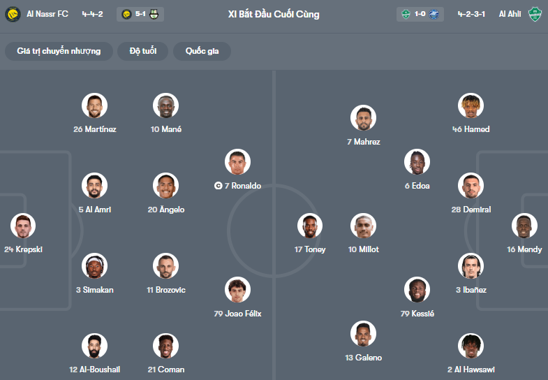 Đội hình dự kiến Al Nassr vs Al Ahli:
