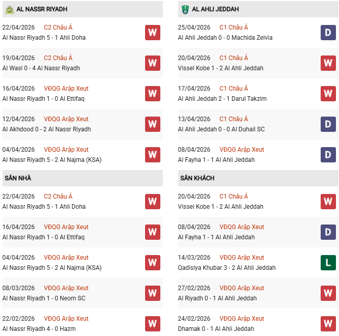 Thống kê phong độ Al Nassr vs Al Ahli: