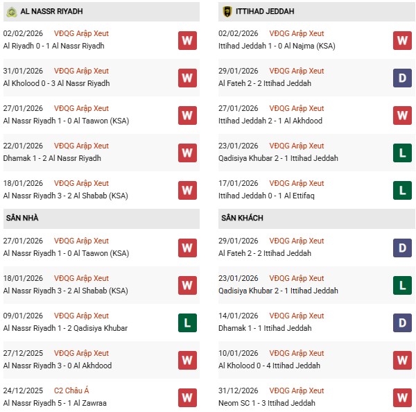 Thống kê phong độ Al Nassr vs Al Ittihad: