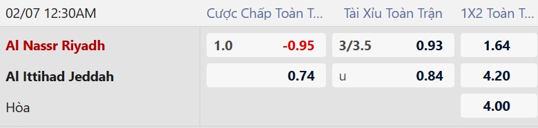 Thông tin tỷ lệ Al Nassr vs Al Ittihad: