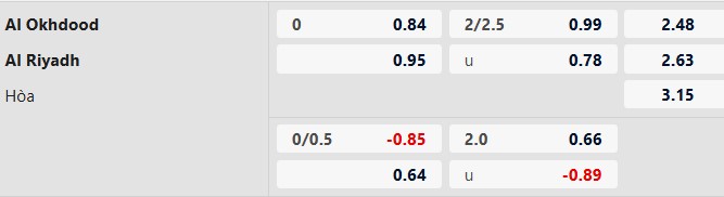 Thông tin tỷ lệ Al Okhdood vs Al Riyadh: