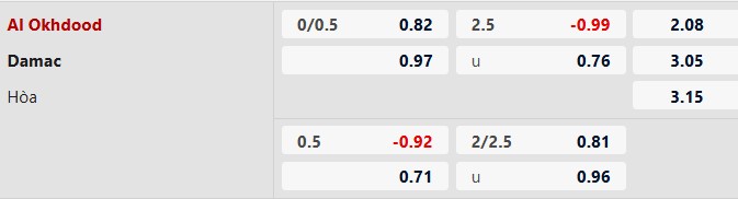 Thông tin tỷ lệ cược Al Okhdood vs Damac: