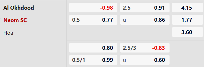 Thông tin tỷ lệ cược Al-Okhdood vs Neom: