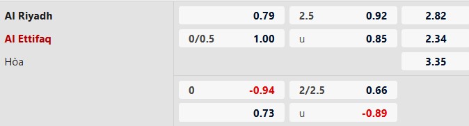 Thông tin kèo bóng đá Al Riyadh vs Al Ettifaq: