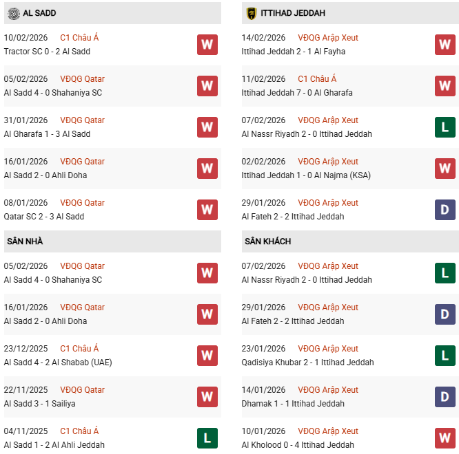Thống kê phong độ Al Sadd vs Al Ittihad: