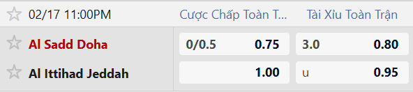 Thông tin tỷ lệ cược Al Sadd vs Al Ittihad: