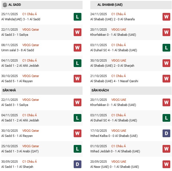 - Trên sân nhà, Al Sadd thắng 2, hòa 1 trước Shabab Al Ahli.