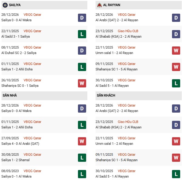 Thống kê phong độ Al Sailiya vs Al Rayyan: