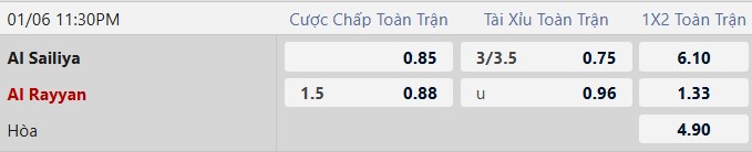 Thông tin tỷ lệ cược Al Sailiya vs Al Rayyan: