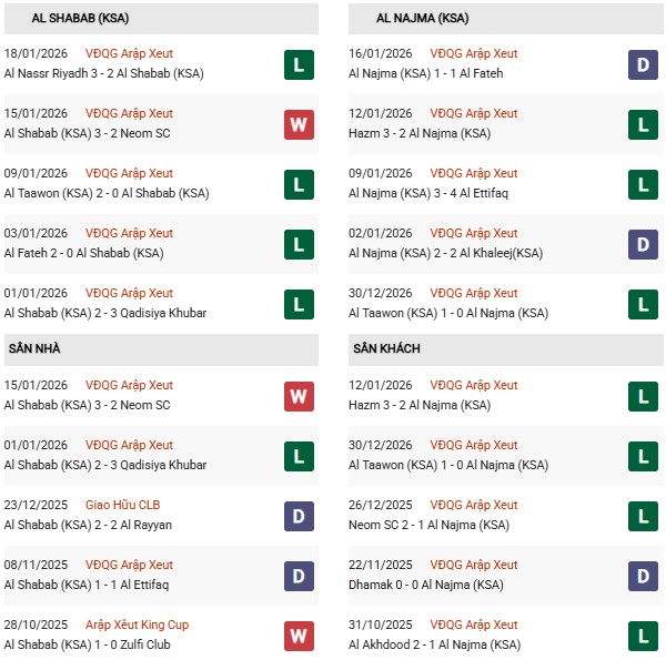 Thống kê phong độ Al Shabab vs Al Najma: