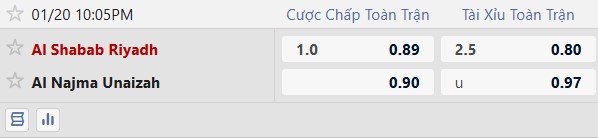Thông tin tỷ lệ kèo Al Shabab vs Al Najma: