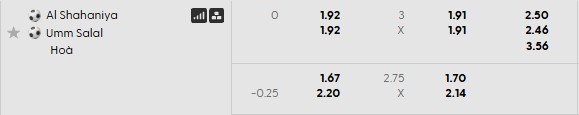 Thông tin tỷ lệ cược Al Shahaniya vs Umm Salal: