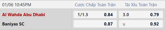 Thông tin tỷ lệ kèo Al Wahda vs Baniyas: