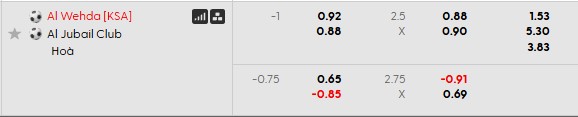 Thông tin tỷ lệ Al Wehda vs Al Jubail:
