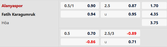Soi kèo tài xỉu Alanyaspor vs Karagumruk: