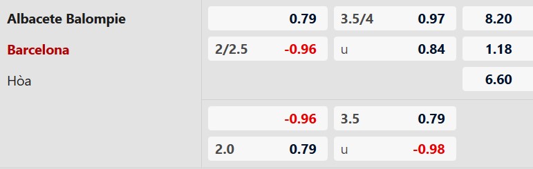 Thông tin tỷ lệ kèo bóng đá Albacete vs Barcelona: