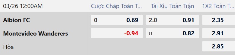 Thông tin tỷ lệ kèo Albion FC vs Wanderers: