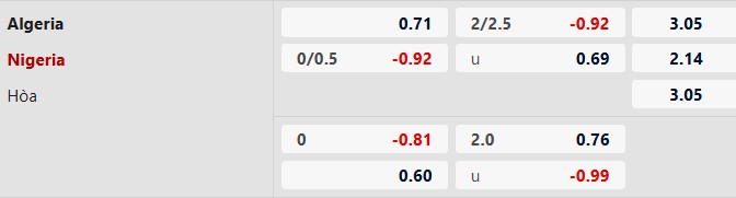 Thông tin tỷ lệ Algeria vs Nigeria: