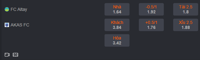 Thông tin tỷ lệ Altay vs AKAS Almaty: