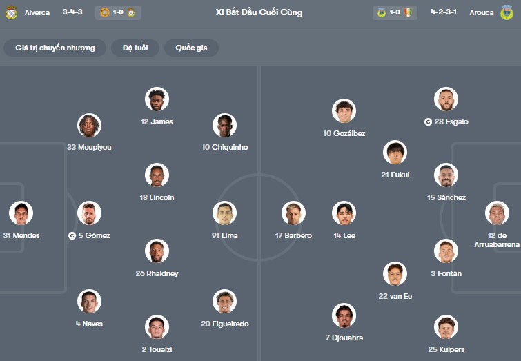 Đội hình dự kiến Alverca vs Arouca: