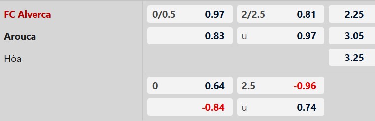 Thông tin tỷ lệ kèo Alverca vs Arouca: