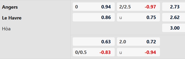 Thông tin tỷ lệ cược Angers vs Le Havre: