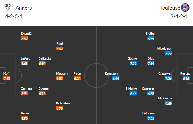 Đội hình dự kiến Angers vs Toulouse: