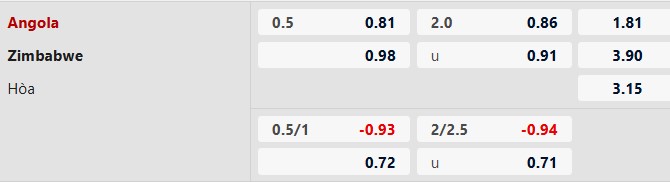 Thông tin tỷ lệ kèo Angola vs Zimbabwe: