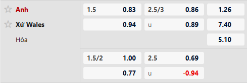 Thông tin tỷ lệ kèo bóng đá Anh vs Wales: